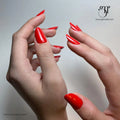 - Efter att ha format nageln till önskad form, applicera ett tunt lager Colour Gel med en Oval Gel Brush Nr. 6 GNfrån cuticula till nagelns spets. Applicera ett jämnt lager och undvik att röra vid nagelbanden.